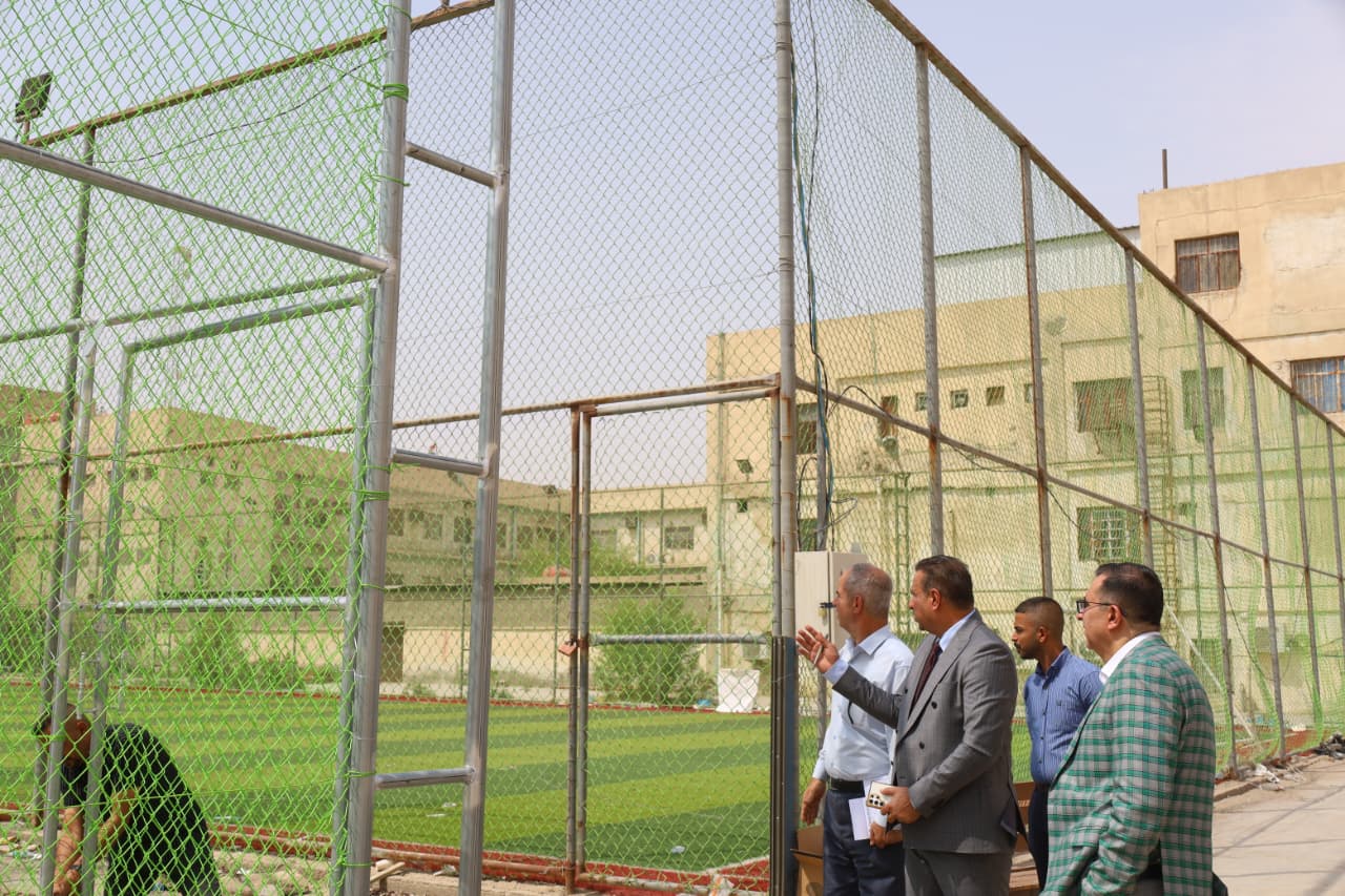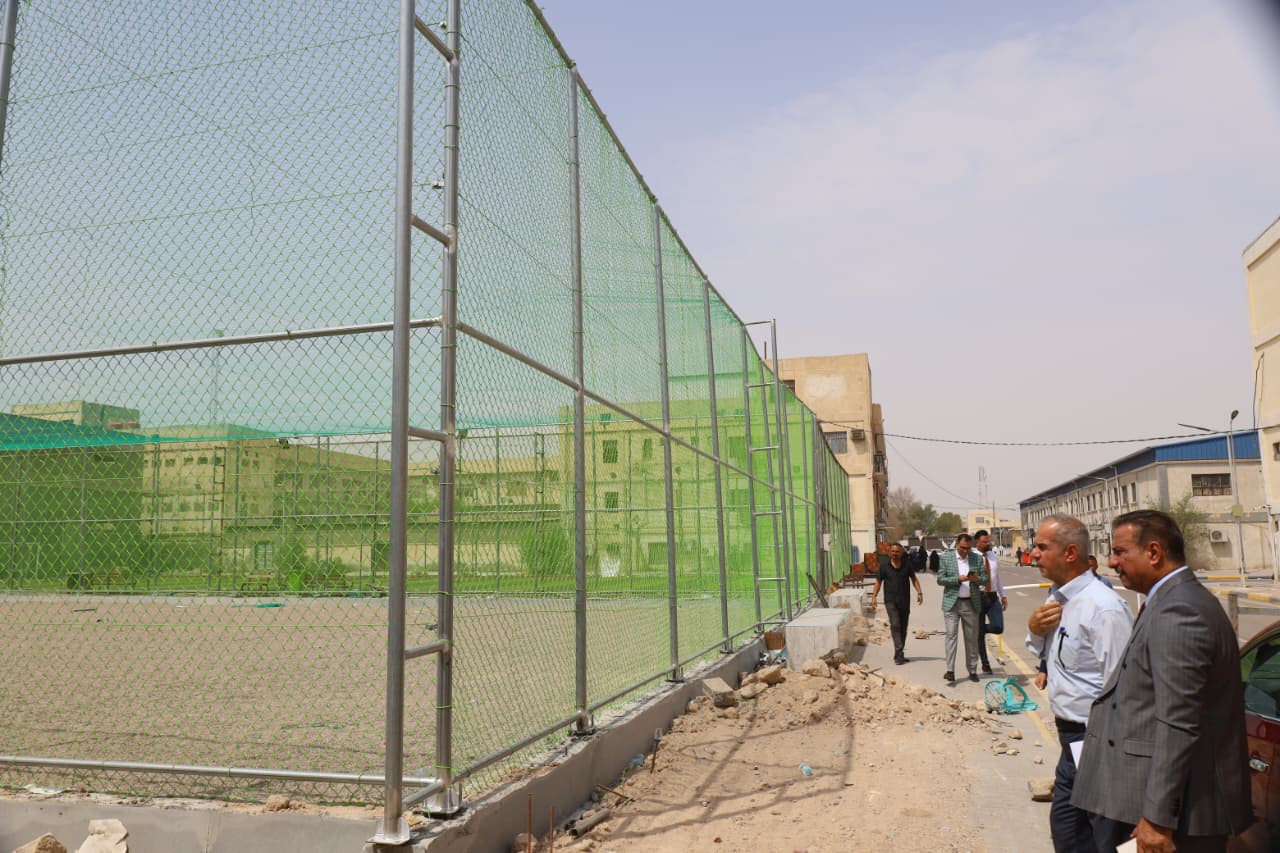 حيث تابع مراحل اكمال ملعب الخماسي المقام على ارض مجمع كليات باب الزبير حيث يشهد مراحل متقدمة في التنفيذ وتشرف عمادة الكلية على متابعة مشروع العمل حيث بين النواب ان العمل مستمر بالملعب وان الكلية تعاقدت مع شركة مختصة في مجال بناء و فرش ارضية الملاعب . ومن الجدير بالذكر ان الكلية قد شرعت بمشروع بناء الملعب الخماسي منذ فترة وبجهود ذاتية وقد ذكر النواب ان الكلية باشرت بانشاء الملعب ضمن المواصفات القياسية في ما يتعلق بالمساحة ونوعية الثيل الصناعي المستخدم في ارضية الملعب, وارتفاع السياج (BRC) , والأهداف ونوع الشباك, بالضافة الى تزويده بالأنارة الليلية المناسبة ليتسنى للطلاب ممارسة هواياتهم الرياضية في جميع الأوقات حسب رغبتهم. ويأتي هذا الجهد متسقا وفقا لما يؤكد عليه جهاز الاشراف والتقويم العلمي من توفير مساحات خضراء مناسبة للترفية ولممارسة الرياضة ومن المتوقع اتمام العمل على انشاء هذا الملعب خلال المدة المحددة من قبل اللجنة المسؤولة والمكلفة بأنشاءه , وسيكون هذا الملعب اضافة جديدة للكلية تجعل منه متكاملا من ناحية المواصفات التي يجد فيها الطلبة الاجواء المناسبة.