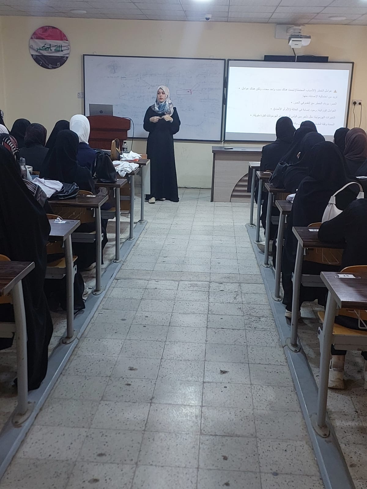 نظمت وحدة التعليم المستمر وحدة شؤون المرأة ووحدة حقوق الإنسان محاضرة توعوية لطالبات كلية التمريض عن الفحص المبكر عن مرض سرطان الثدي والتي حاضرة فيها المدرس علياء حسين علي عضو الهيئة التدريسية بالكلية