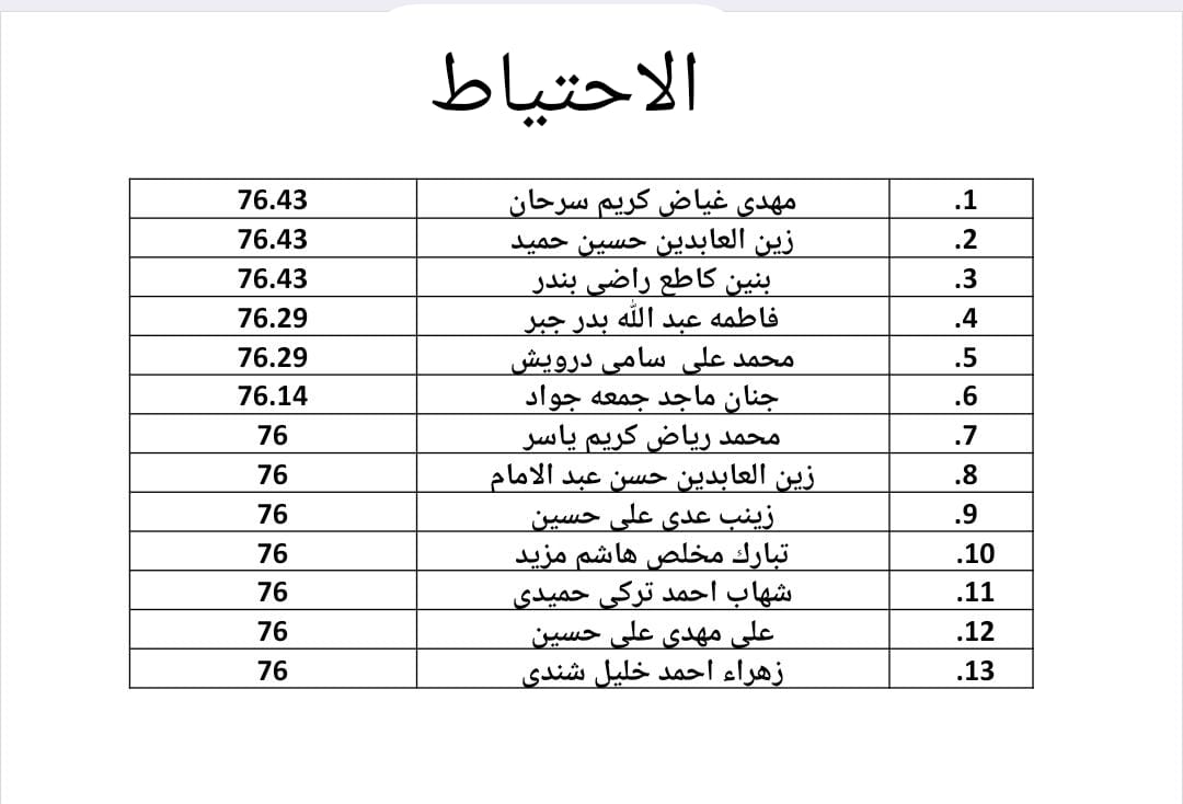 ملاحظة / في حالة عدم حضور الطالب لاكمال التسجيل يحل محلة البديل من الاحتياط .