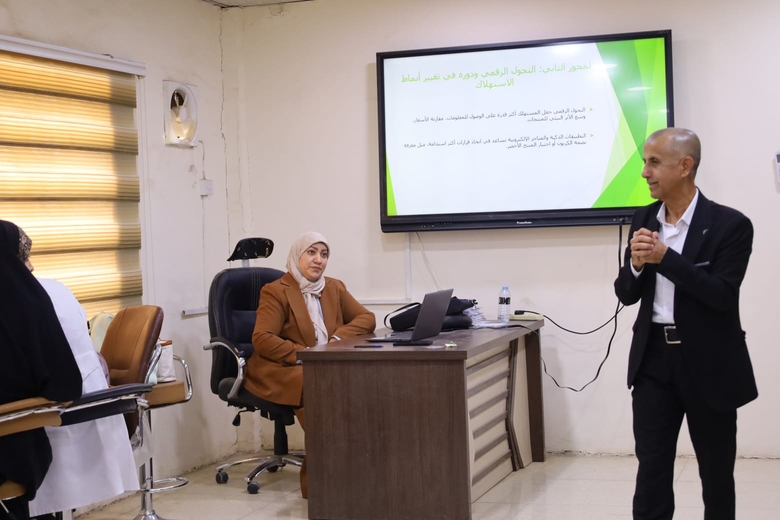 نظمت وحدة التعليم المستمر بالكلية وبالتعاون مع فرع العلوم الطبية الاساسية ورشة عمل حول التحول الرقمي والاستهلاك الأخضر "نحو مستقبل مستدام"