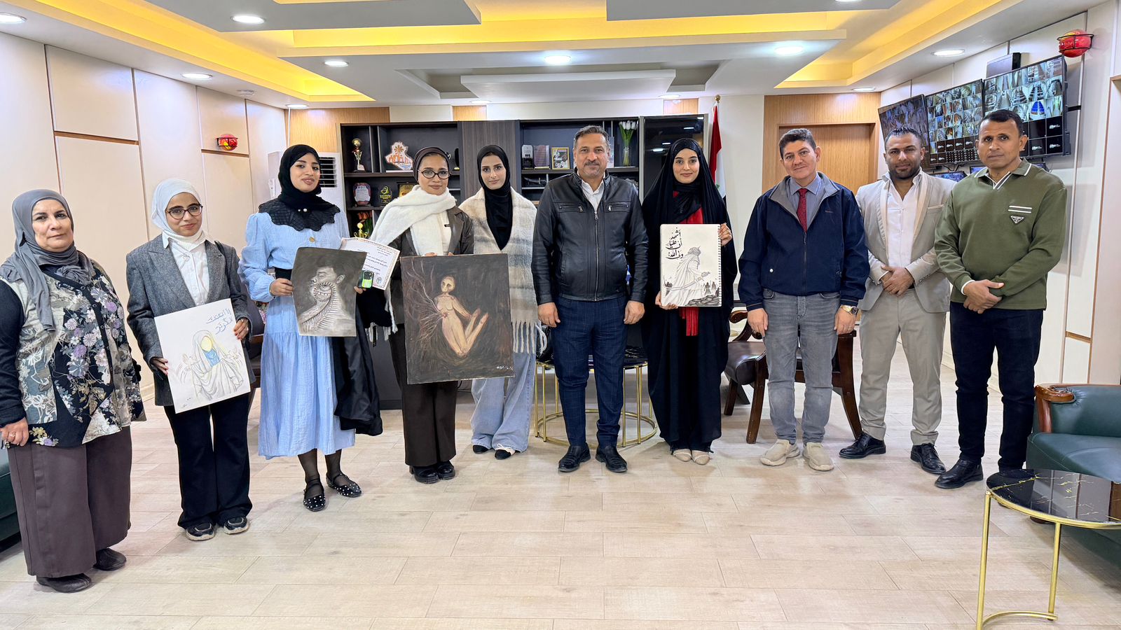 وعبّر المشاركون في المعرض عن شكرهم وامتنانهم لعمادة الكلية وقسم النشاطات الطلابية على رعايتهم ودعمهم المتواصل للمواهب الشابة ، مؤكدين أن مثل هذه الفعاليات تسهم في تنمية الإبداع الفني وتعزيز الانتماء الوطني لدى الطلبة.