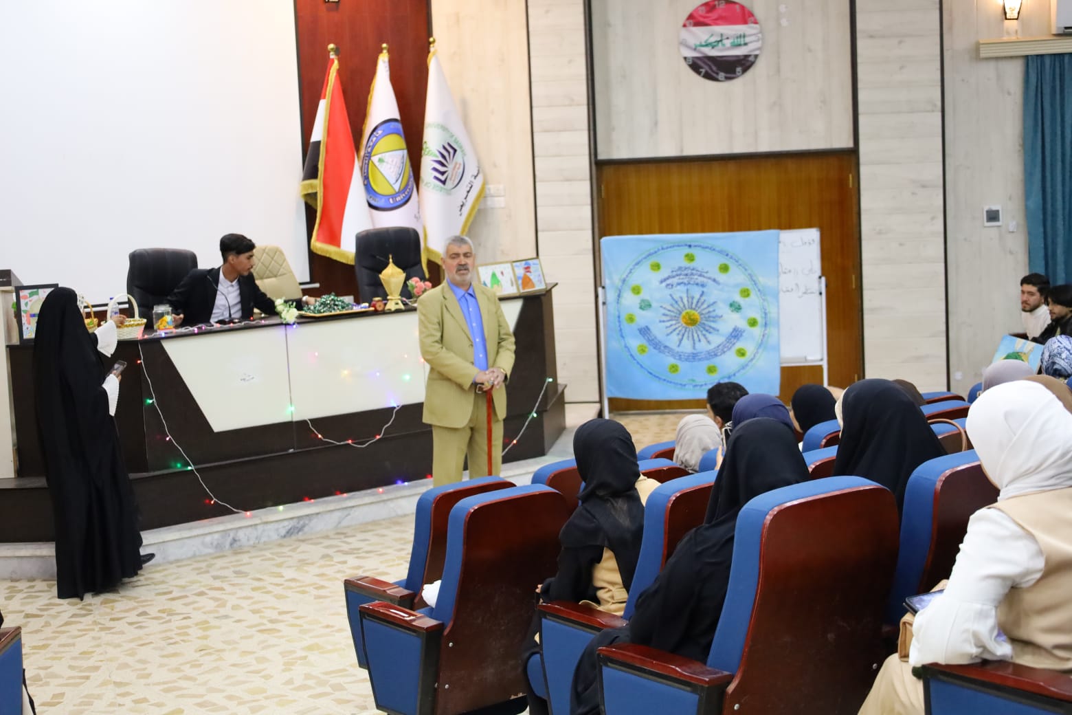 وتضمن المحفل فقرات متعددة , استهلت بتلاوات عطرة من آيات الذكر الحكيم , اعقبتها كلمات القاها المدرس فرحان لايذ عايز عضو الهيئة التدريسية بالكلية اكدت على اهمية اقامة مثل هذه المحافل في ترسيخ القيم