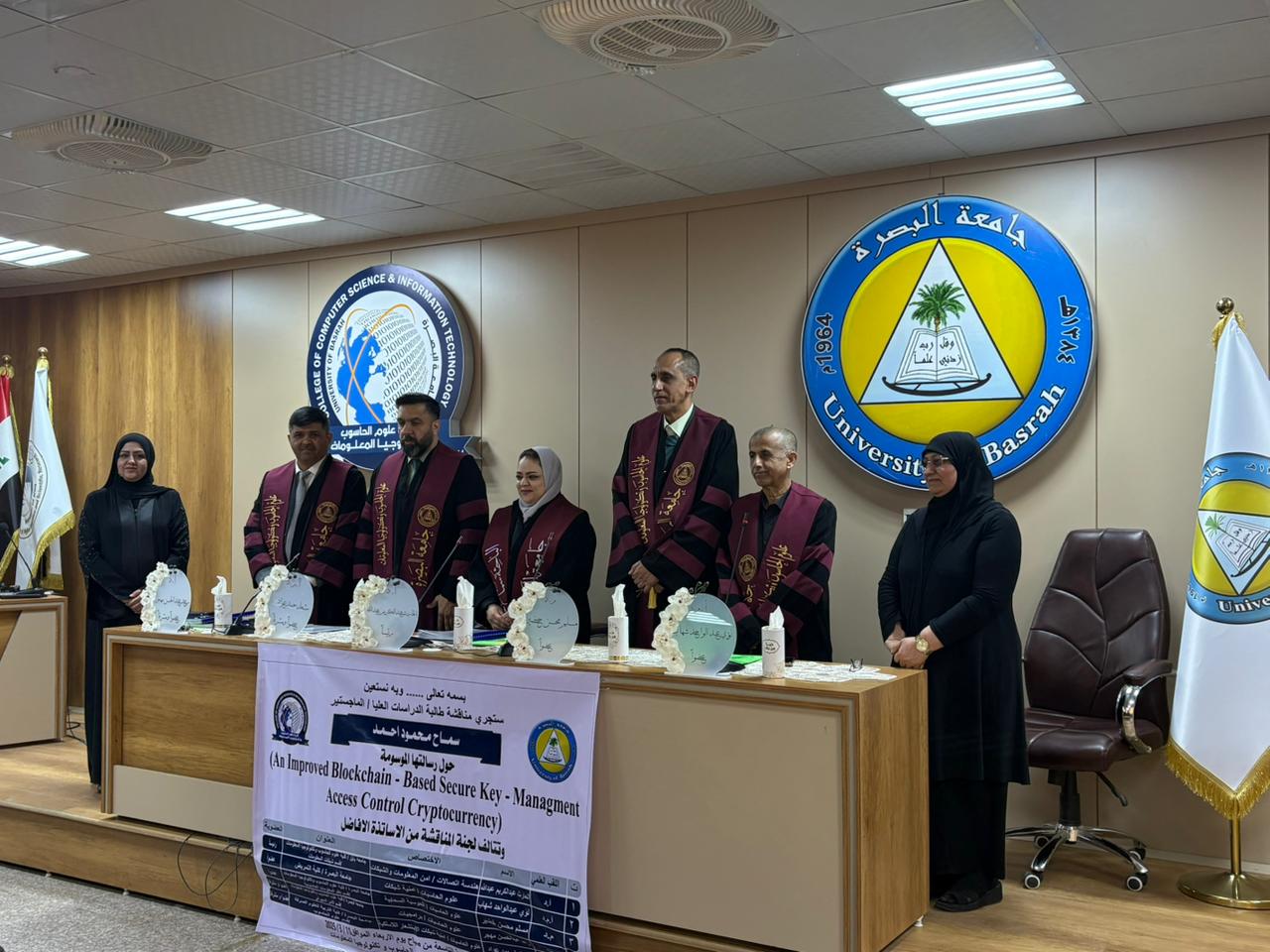 شاركت كلية التمريض بجامعة البصرة بمناقشة رسالة ماجستير في جامعة البصرة كلية علوم الحاسوب وتكنولوجيا المعلومات للطلبة الدراسات العليا سماح محمود احمد لرسالته المسومة حول( نظام محسن لادارة المفاتيح الامنة والتحكم في الوصول في الى العملات المشفرة قائم على تقنية البلوك تشين )
